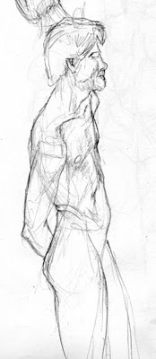 I headed to the YWCA in Santa Monica last night for some figure drawing. I was there last 8 months ago and absolutely loved it. Improv classes conflicted and I never ended up heading back. Now that I went, I'd like to make it a more consistent thing. It would mean 5 nights of my week would involve going out, but I'm all right with that. If I stop wasting as much time as I do on the computer, that still leaves time to get my own projects done. I'll save the rant I was going to type for later. Instead, this'll just be a posting of some sketches. Enjoy.