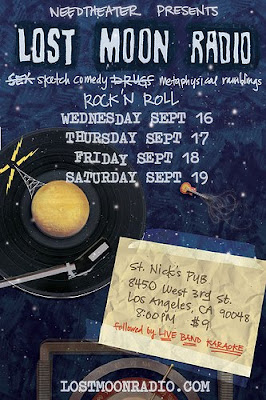 For those not spending the next three nights either in the midst of or preparing for Rosh Hashanah, check out Lost Moon Radio. I went to it last night, and it was a combination of brilliant sketches and songs followed by live band karaoke. The crowd was a mix of artsy bohemian improv types, and the performers ranged from playing toddlers to singing in three part harmony to absurdist over the top characters. It's a hard show to put into words. Hidden away above St. Nicks this thing is going to blow up.